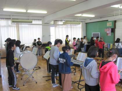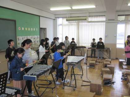 音の重なりを感じながら合奏に取り組んでいます。休符などを大切にそれぞれの楽器の特徴を生かし,音の重なりの良さを感じ取りました。