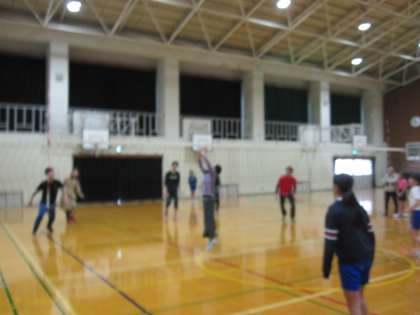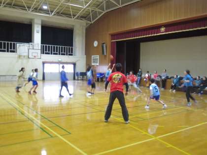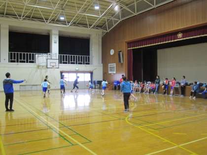 バスケットボールと部とバレーボール部のお別れ試合が行われました。先生たちも必死に走り,ボールにとびついて,子どもたちとの試合を楽しみました。