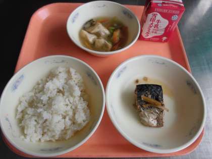 麦ごはん・牛乳・さばのしょうが煮・厚揚げの野菜あんかけ