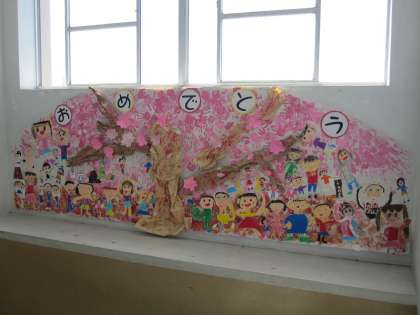 6年生を送る会のときに,体育館での掲示物を廊下などに掲示しています。卒業の時期を感じさせています。