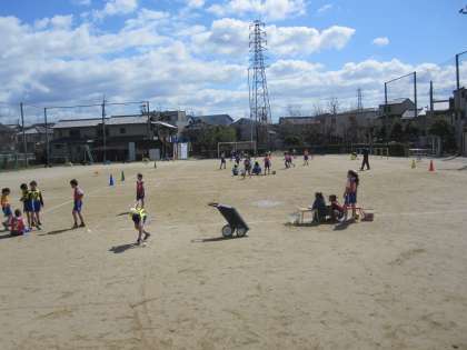 タグラグビーの学習をしています。子どもたちは,しっかりと作戦を考えながら学習を進められるようになってきました。