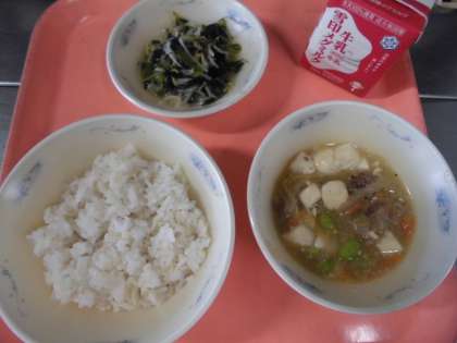 子どもたちから、「『五目どうふ』美味しかったです。『ほうれん草ともやしのいためナムル』は、ほうれん草ともやしの組み合わせが、美味しかったです。」と、感想をくれました。