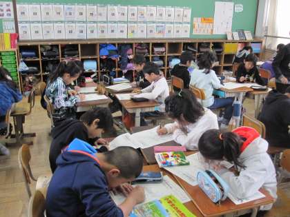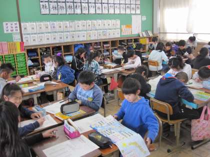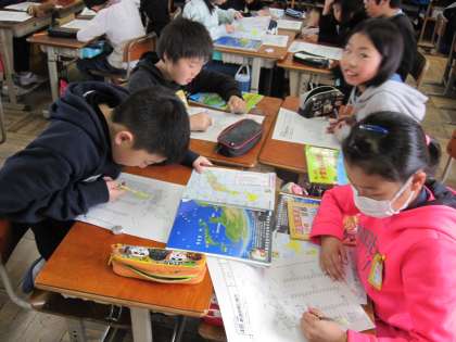 ペアで向かい合って,都道府県の問題を出し合いました。漢字で書ききることも大切に学習しています。4年生の終わりになり,しっかりと覚えることができてきました。
