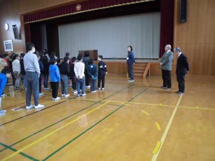 部活動閉講式がありました。地域指導者の清水先生、田中先生も来てくさいました。お二人とも、来年度も教えていただけます。今年度も、ありがとうございました。来年度も、よろしくお願いいたします。
