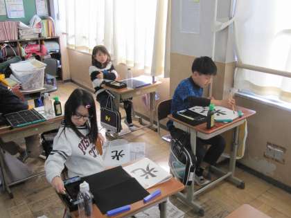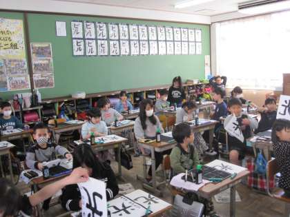 文字のバランスを整えて,はらい,はねを意識して書きました。筆もしっかり立てて,よい姿勢で頑張りました。