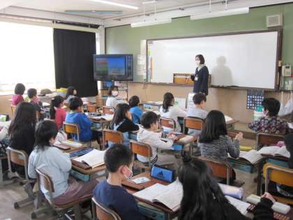 そろばんの学習をしました。問題は簡単なたし算ですが,そろばんでどのように計算するのかを学習しました。