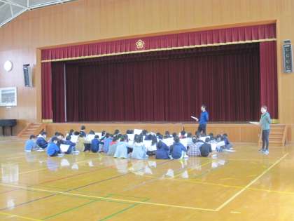 体育館に学年で集まり,6年生での約束を確認しました。最高学年として,がんばっていくことを再確認しました。