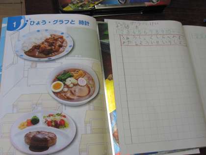 算数科の学習をしました。好きな給食を選んで,よくわかるように表に整理することを考えました。ノートにめあてをしっかりと書いて学習をしていきます。