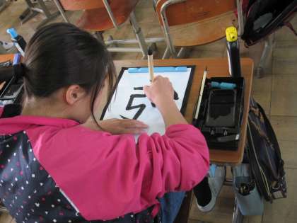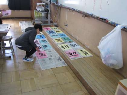 6年生での目標・決意の一字を書きました。それぞれの思いが込めて,字に表していました。