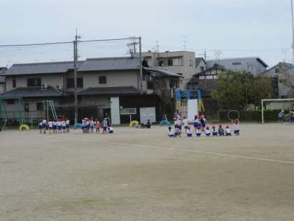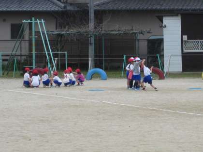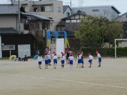 体育科で遊具の使い方を学習したり,体ほぐしの運動をしたりしました。グループに分かれて競いながらフープ渡しもしました。