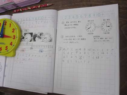 午前が12時間,午後が12時間あることを理解し,1日は24時間あることを学習しました。また,時間についても考えました。