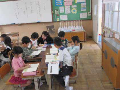 読んで分かったことを音読で表現しています。音読発表会に向けて,グループで相談しました。