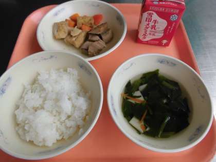 子どもたちから、「『なま節と厚揚げの煮つけ』は、厚揚げがふわっとしていて、たけのこの歯ごたえも良く、とっても美味しかったです。『すまし汁』は、味がとってもやさしく、美味しかったです。」と、感想をくれました。