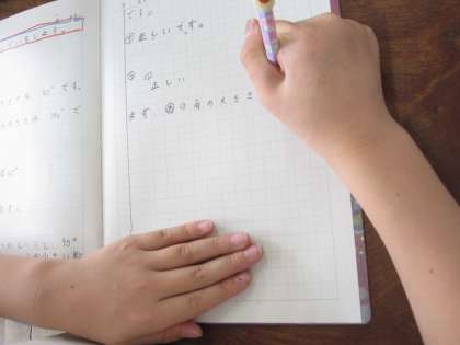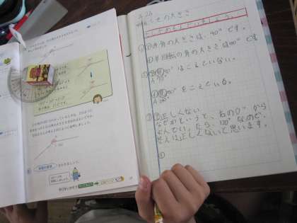 たしかめの練習問題をしました。角の大きさの説明の仕方をじっくりと考えていました。ノートに見やすく書いていました。