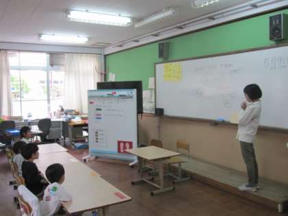 みんなが気持ちよく過ごすためのあいさつなどについて考えました。自分たちだったらどうするかなどを考えました。