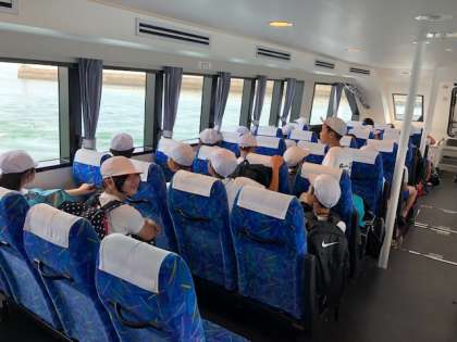フェリーに乗りました。船からの景色を楽しんでいます。