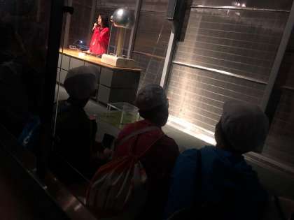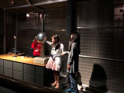 名古屋市科学館に到着しました。放電ラボで見学しているグループです。