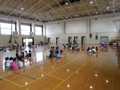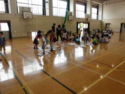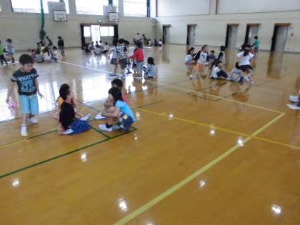2年生が、1年生と仲良く遊べるように考えました。新聞じゃんけん、ハンカチおとし、カゴメカゴメなど、2年生が上手にリードして楽しく活動できました。