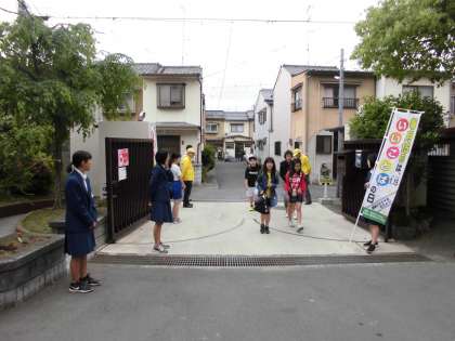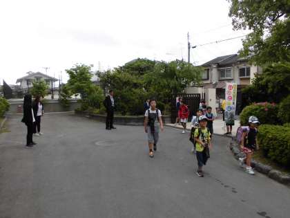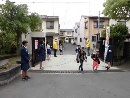 5月のあいさつ運動を行いました。中学校の生徒も参加してのあいさつ運動です。