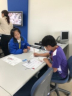 説明の仕方を工夫して活動をしています。昼ご飯を食べて,午後も頑張ります。
