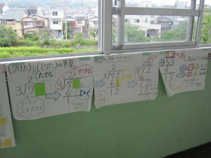 これまでの算数の学習の復習のために,廊下に掲示をしています。わり算の筆算を確実に身に付けてほしいと思います。