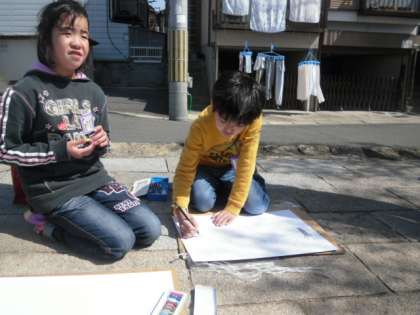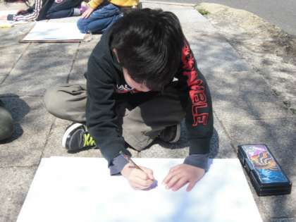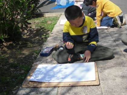 4月12日(火)は、有栖川へ写生に行きました。それぞれが自分の思い思いにかいていました。
