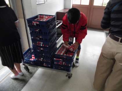 今日は、食器を4種類使うので、持っていくのも返すのも重くて大変です。委員会の子どもたちが、倒れた食器を戻したり、小さい学年を手伝ったりします。