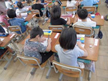 今日,1年生が習ったひらがなは,あさがおの「あ」でした。難しいけれど,丁寧に書いていました。
