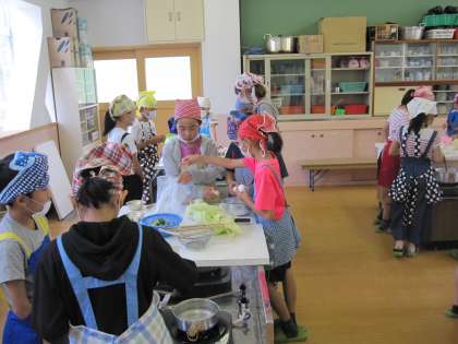 調理実習をしました。各グループで,役割を分担して,調理をしました。