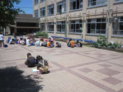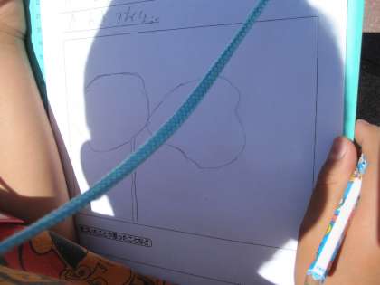 ホウセンカの芽が出ました。双葉の様子をしっかりと観察しています。