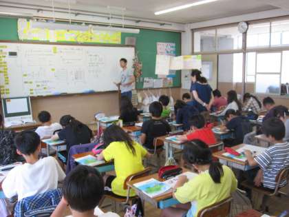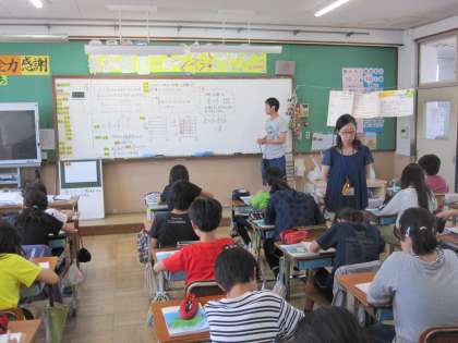 分数×分数について学習しました。図や数直線図を使って,自分の考え方を交流しました。