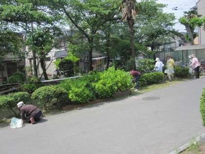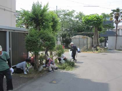 清掃活動についての連絡があり,晴天のもと,清掃活動が行われました。校内でもたくさんの方が,雑草を抜いていただきました。