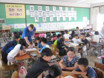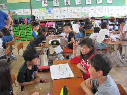 天気の英語表現に慣れ親しみました。天気のすごろくを使って,グループで楽しんで英語表現をしていました。