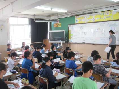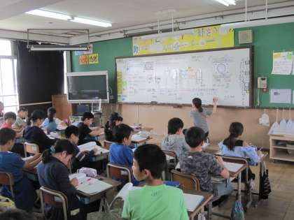 時間を分数で表す方法について考えました。時計の図も使いながら,どのように考えればよいのかをクラスで交流しました。