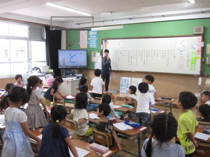 『と』の付く言葉をたくさん考えました。プリントにていねいに『と』を書きました。