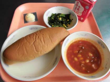 子どもたちから、「『大豆と牛肉のトマト煮』は、大豆と牛肉にトマトの味が浸み込んでいて、美味しかったです。『ほうれん草のソテー』は、ほうれん草とコーンの甘みが良くあっていて、美味しかったです。」と、感想をくれました。