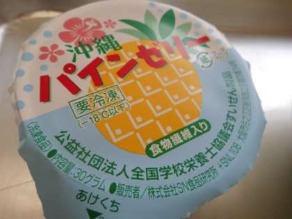 今日の献立は,沖縄の料理です。デザートのパインゼリーも楽しみに食べていました。