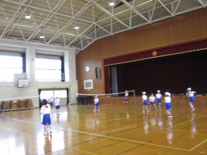 ソフトバレーボールを学習しています。友達とボールをしっかりとつなぐことを大切にして学習しています。子どもたちは,声をたくさんかけ合っていました。
