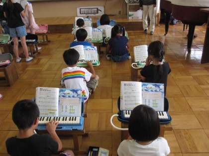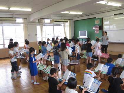 鍵盤ハーモニカと一緒に歌を歌って学習をしています。楽器とともに,明るく元気に歌うことができていました。
