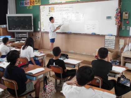 6年生の算数では,ペンキを塗れる広さを求めるために,割るのか掛けるのか考えてから式を立てる必要があります。自分が考えた方法をみんなに分かるように説明することができました。