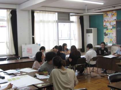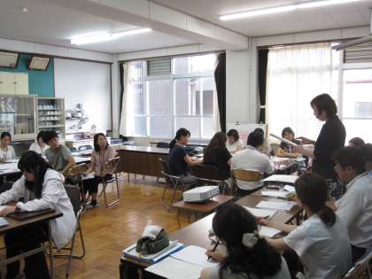 前任校長の塩貝先生に来ていただき,校内研究授業について研修を行いました。子どもの振り返りが充実するように,どのような声かけ,支援が必要かなどを協議し,普段の学習に生かすことができるよう,教員で話し合いました。