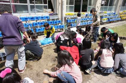 理科の学習で、ひまわりとホウセンカの種を植えるので