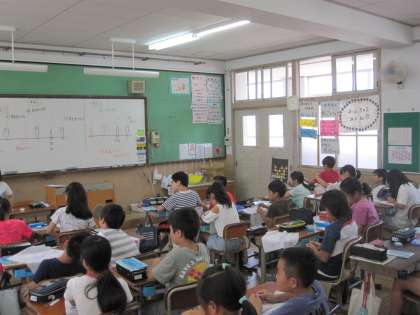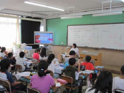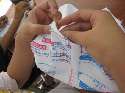 本返し縫いと半返し縫いを学習しました。教材提示装置を使って,縫い方をしっかりと見ながら,子どもたちは針を通すところを確認して縫っていました。