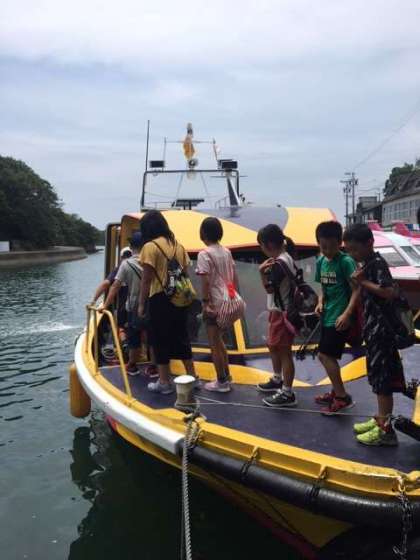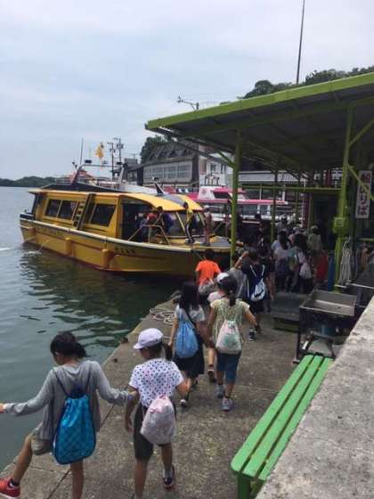 船の上は少し揺れて,さらに慎重に船の中に入りました。