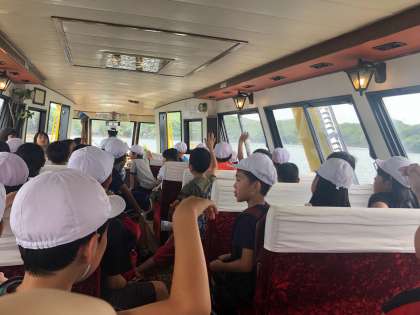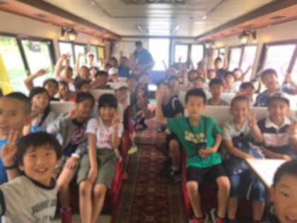 船の中で,子どもたちはとても楽しんでいます。