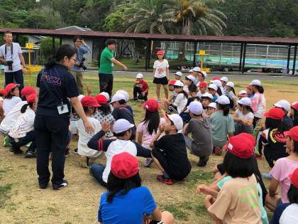 雨がやんでいるので,外で活動をしています。
