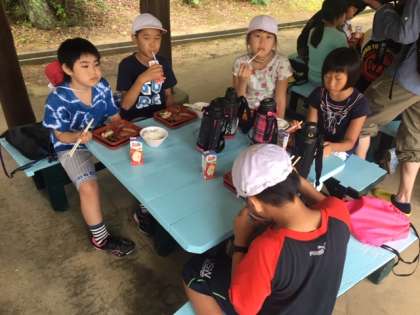 たっぷり活動したので,ジュースもおいしくいただいています。