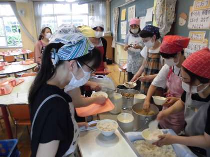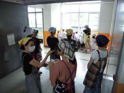 始めに栄養教諭から給食についての話を聞いていただき、その後実際に体験されました。途中、1年生の給食の様子も参観されました。