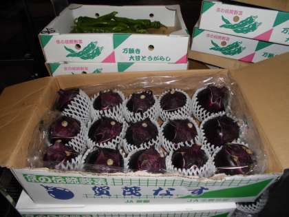 「賀茂なす」や「万願寺とうがらし」は、夏野菜の一つです。賀茂なす・万願寺とうがらしとこんにゃくを炒めたものに、教室で田楽味噌のように、みそだれをかけて食べました。給食のみそだれは、「八丁みそ」と「信州みそ」・砂糖・みりん・酒・いりごまを使って作りました。