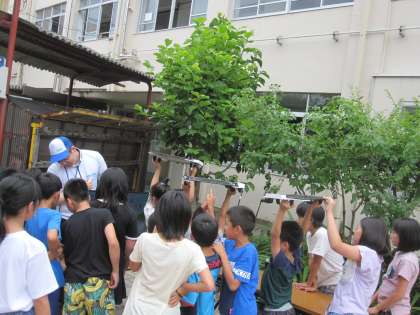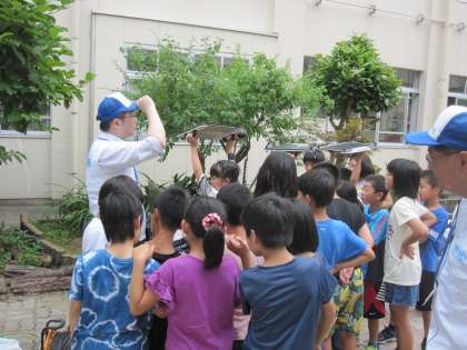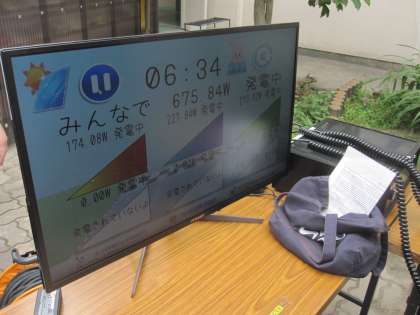 日新電機の方に来ていただいて,ソーラーパネルなどを使って発電をしました。